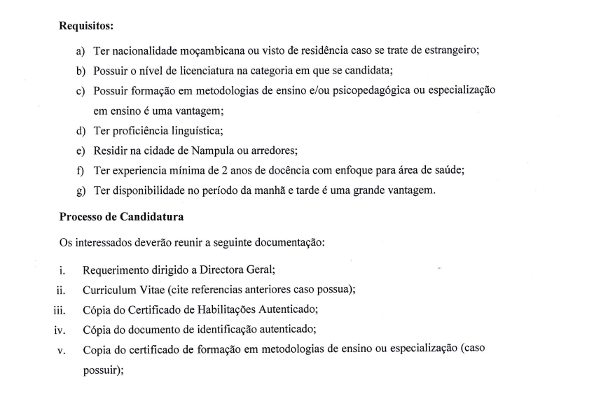 | Ordem | Descrição da Vaga | Requisitos | Candidatura |